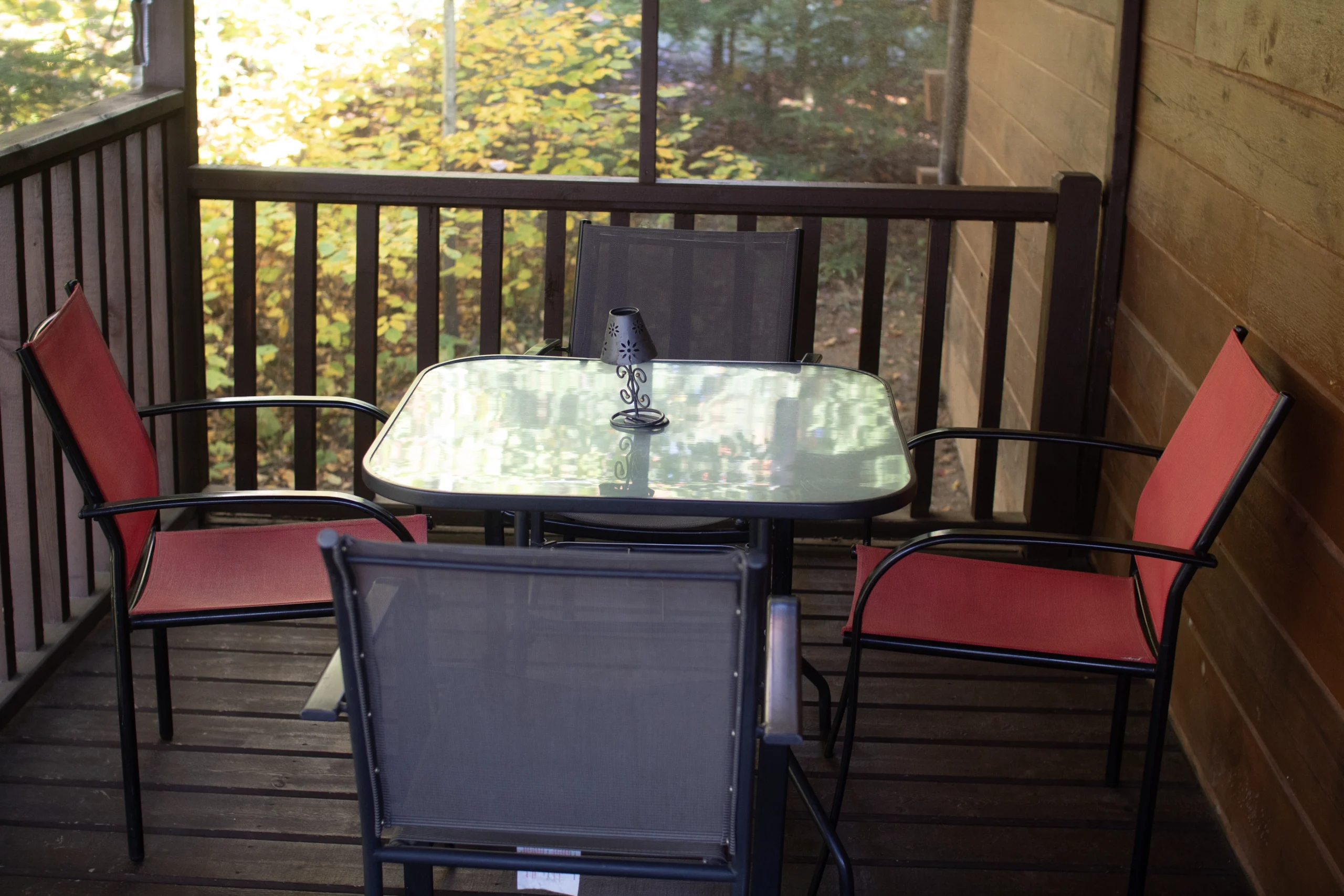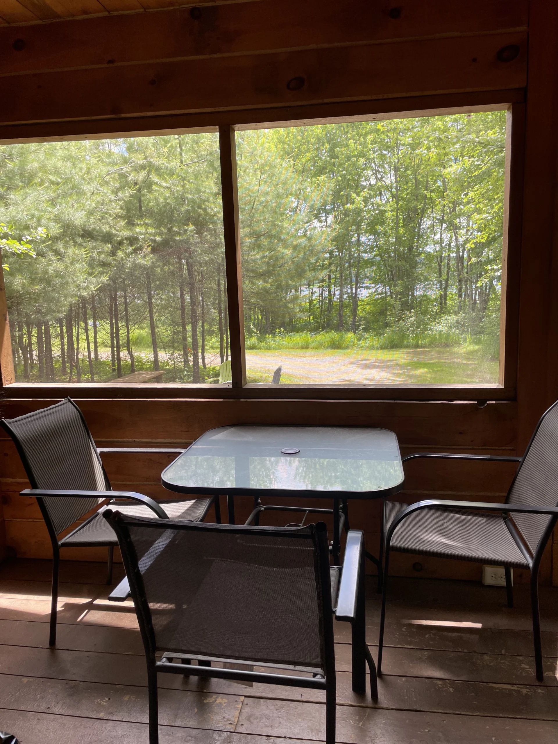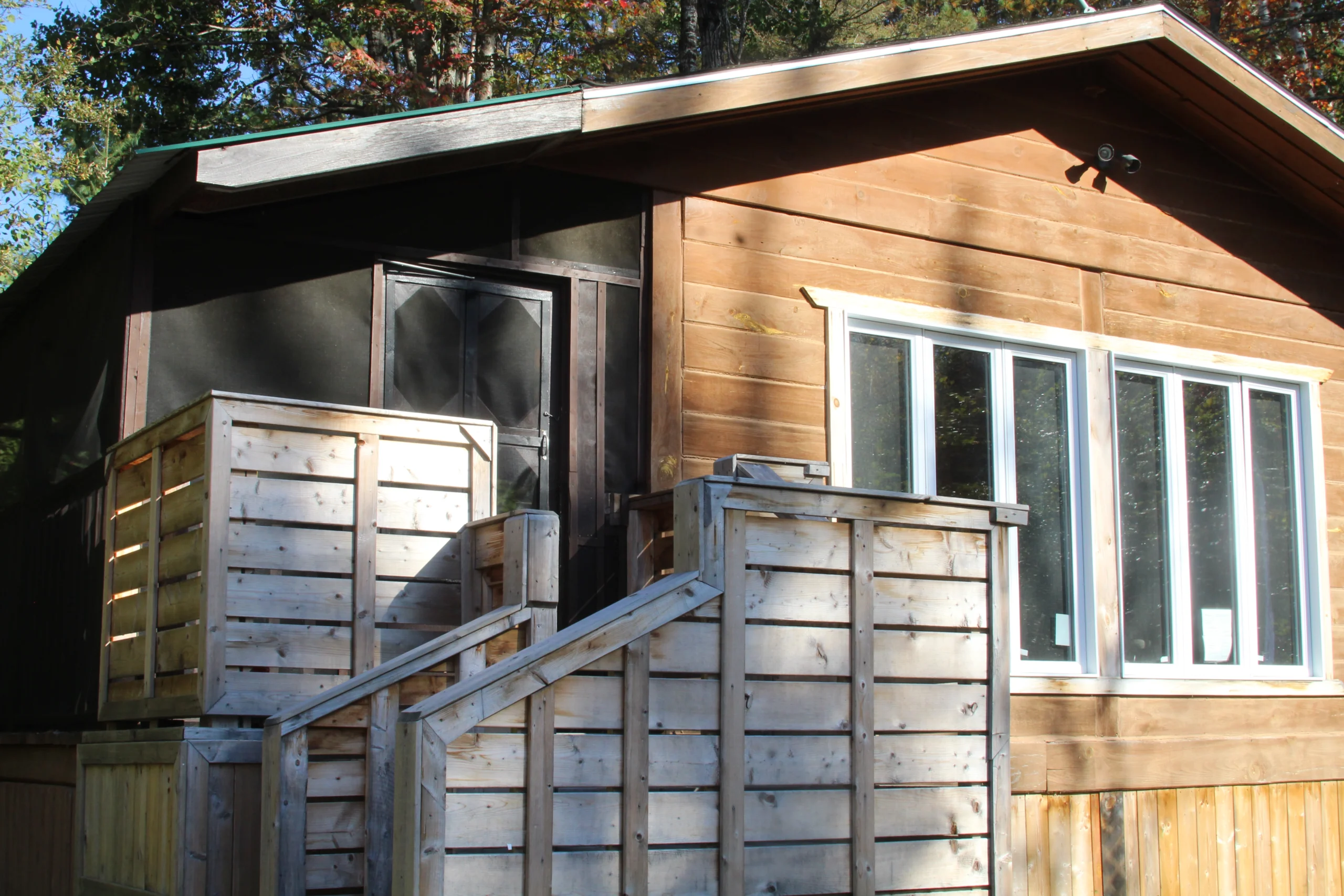 L’un des points forts de nos chalets est leur grande véranda grillagée de 2,4 mètres. C’est l’endroit idéal pour prendre votre café du matin ou un repas en famille sans vous soucier des insectes. Chaque véranda est équipée d’un barbecue au propane, vous permettant de faire des grillades tout en profitant de la vue imprenable sur le lac Leslie.